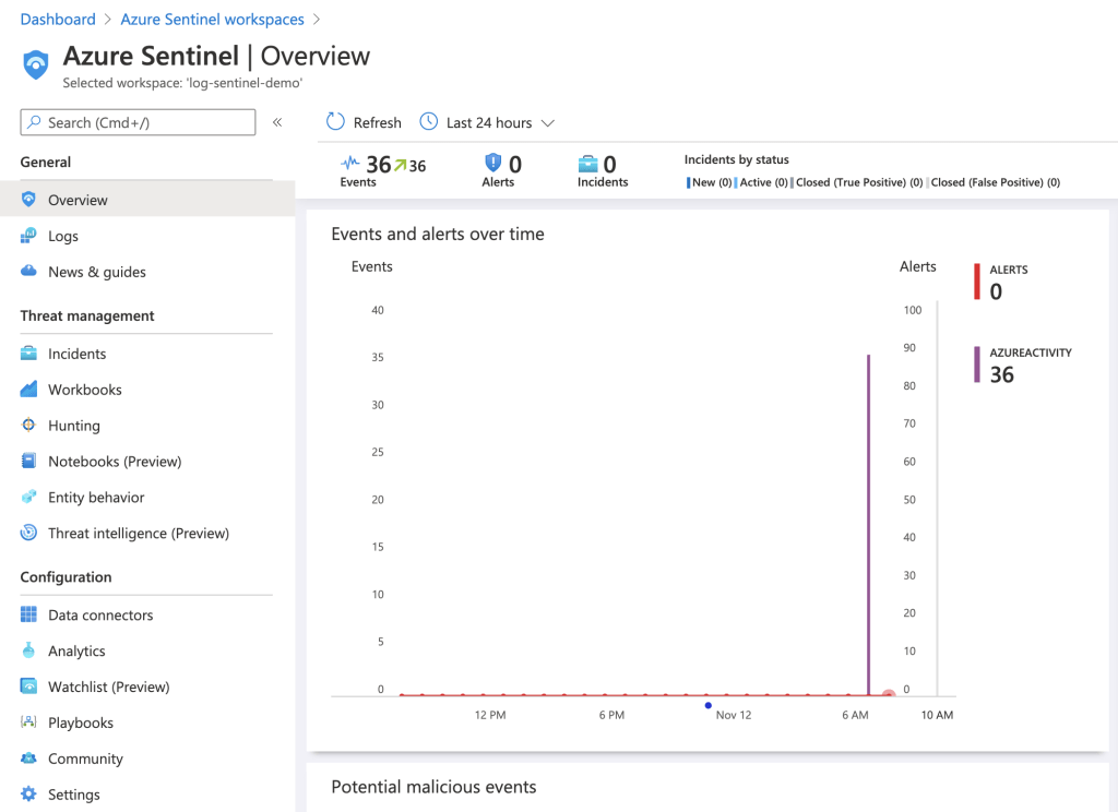 - When Azure Sentinel detects unusual behavior or suspicious activity it will analyze the data and alert the appropriate team members.