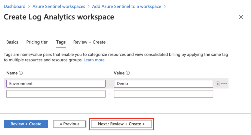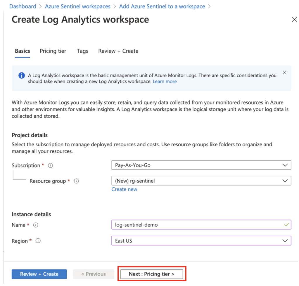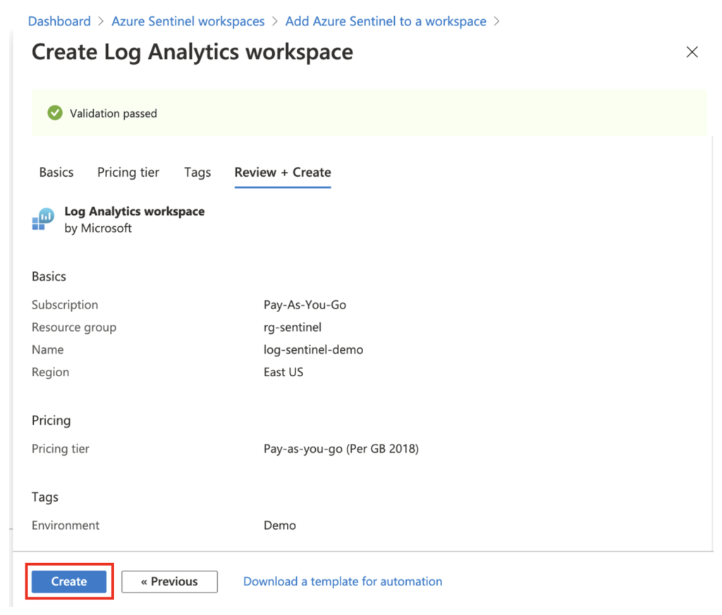 - Azure Sentinel will be added to the Log Analytics workspace.