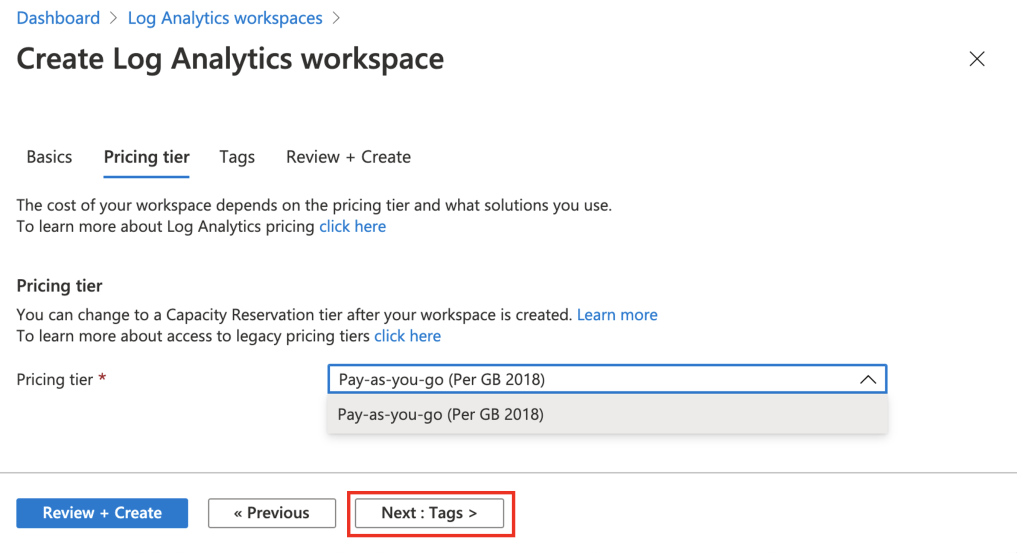 - Only one pricing tier is currently available. This can be changed after the workspace is created.