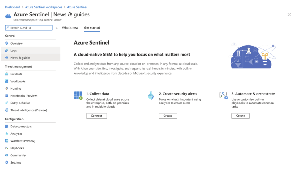 - Using built-in orchestration and task automation, Azure Sentinel can respond to common threats without human intervention.
