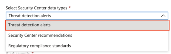 - In the Triggered conditions section, select one of the the three options from the Select Security Center data types dropdown: