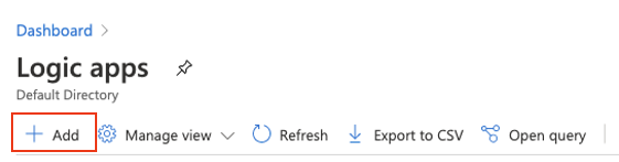 - The Logic Apps page will open in a new browser tab. Click the + Add button